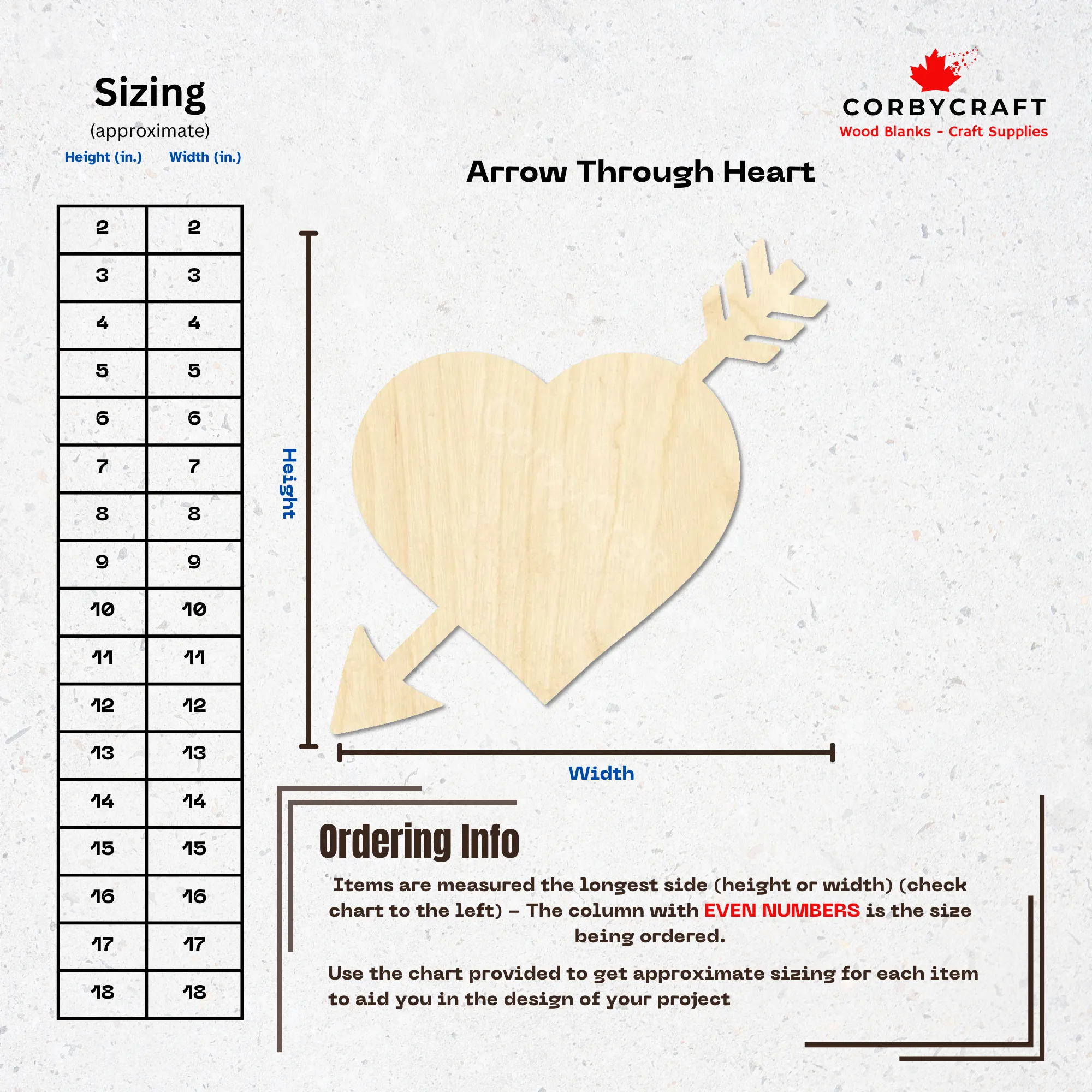 This Baltic birch plywood Arrow Through Heart cutout is ready for your next project. Clean edges, smooth surface, and made from quality wood that takes paint and resin like a champ.