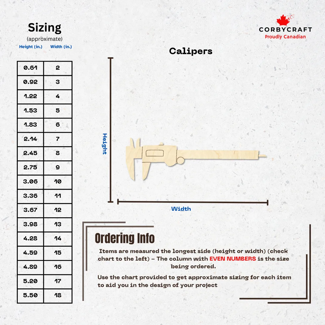These laser-cut wooden calipers are perfect for crafters who love tool-themed projects. Made from smooth Baltic birch plywood, they come ready for whatever you want to create. Paint them, stain them, burn designs into them, or leave them naturalโ€”the choice is yours. They’re great for workshop signs, wall hangings, or adding to larger wood projects.