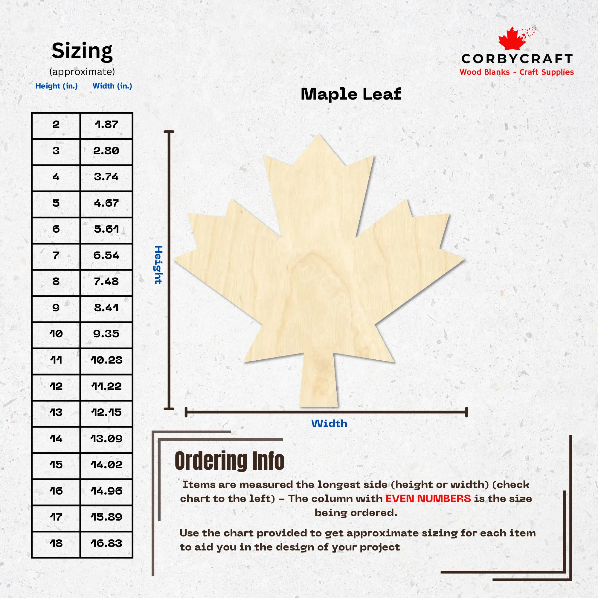 These Canada Maple Leaf wood cutouts are made from smooth Baltic birch plywood, ready for whatever project you have in mind. The classic maple leaf shape works great for Canadian pride pieces, fall crafts, or everyday signs. Edges are clean and sanded so you can start creating right away.