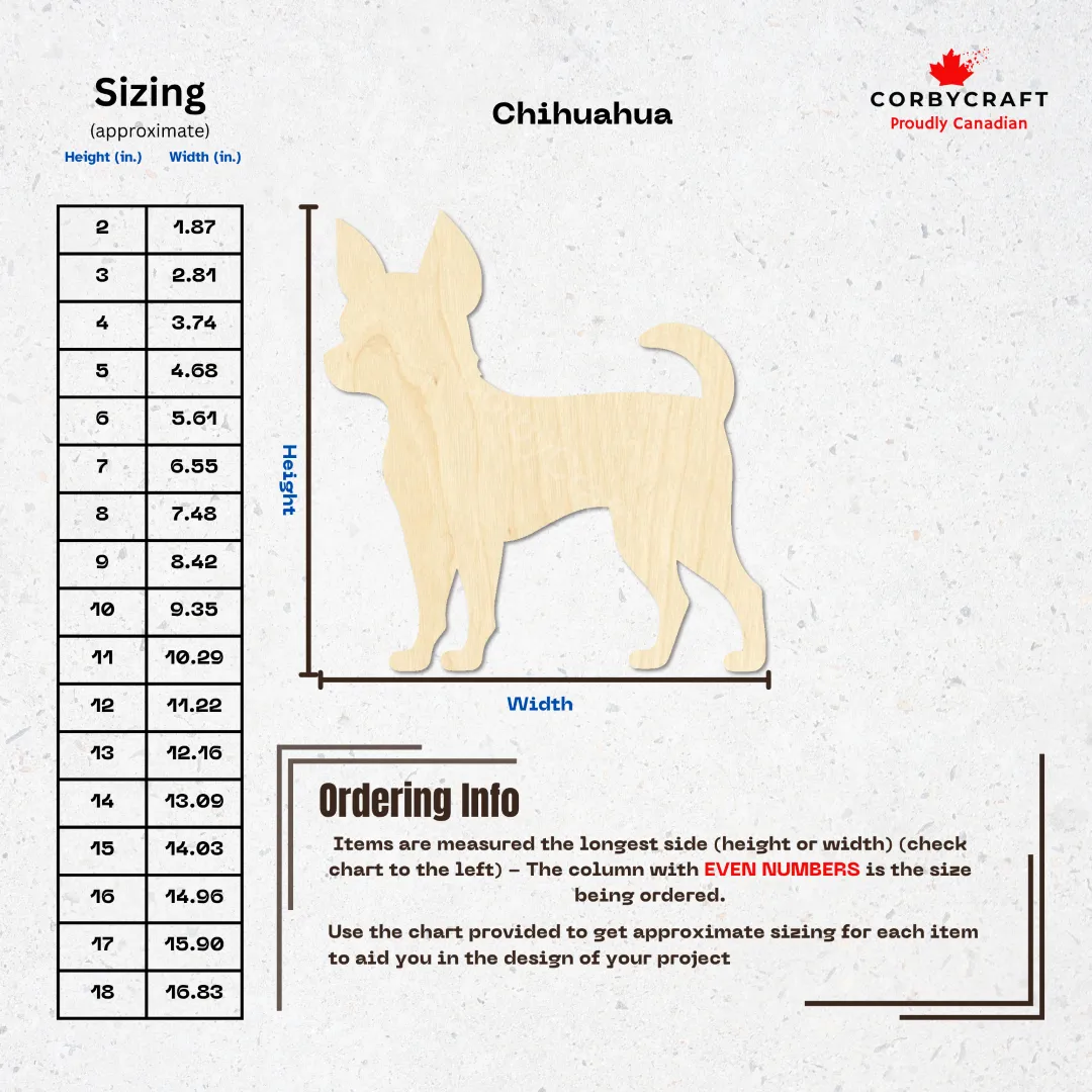 Grab this laser-cut Chihuahua craft blank made from sturdy Baltic birch plywood. It’s a fun dog shape perfect for your next project, whether you’re a crafter or just love making things for dog lovers.