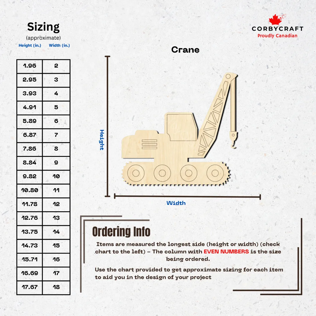 This laser-cut crane wood cutout is a blank canvas waiting for your creativity. Made from quality Baltic birch plywood, it’s the perfect piece for construction-themed projects, home dรฉcor, or gifts. Whether you’re into wood burning, painting, staining, or resin work, this unfinished shape gives you total control over the final look.
