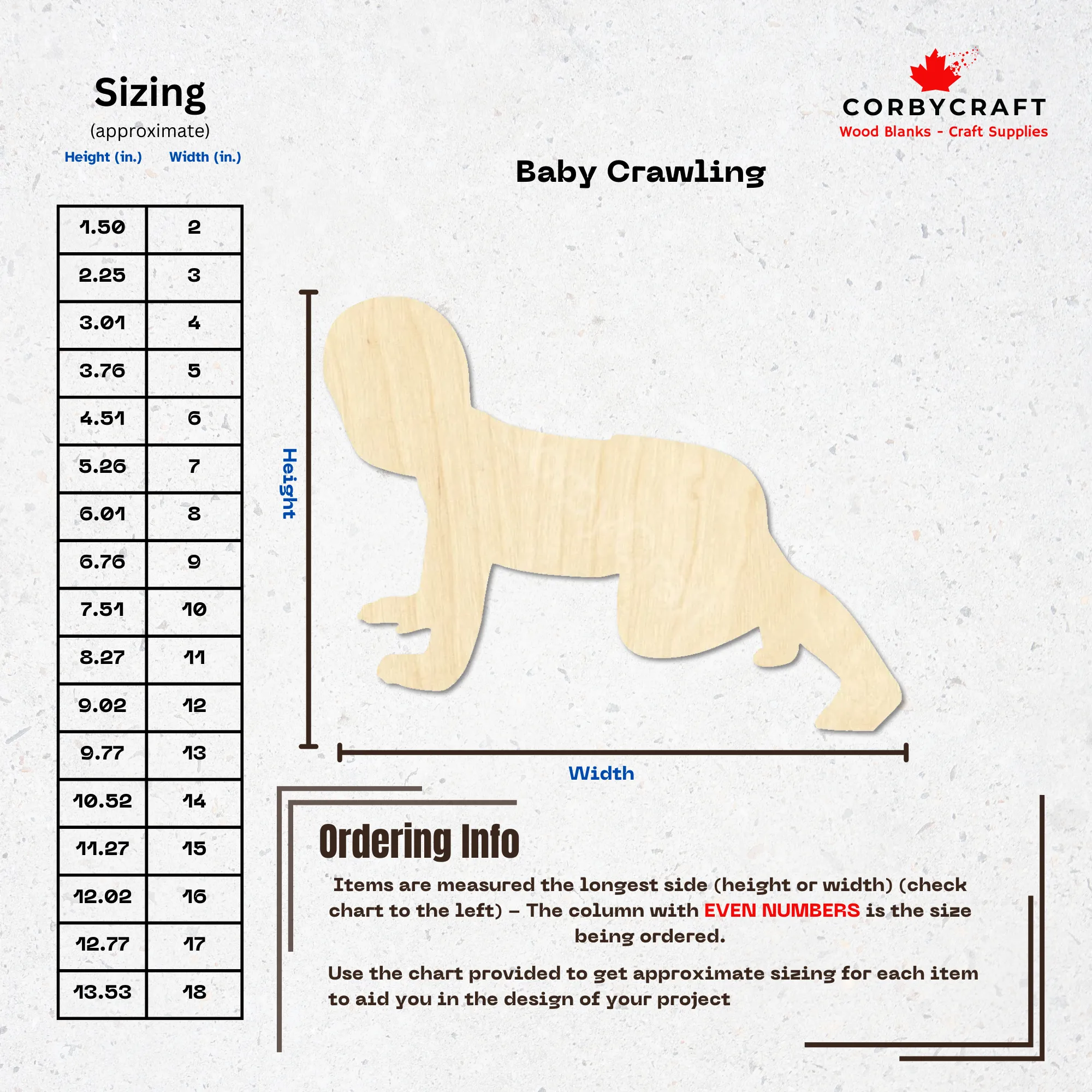 This Crawling Baby Wood Cutout is made from smooth Baltic birch plywood, ready for your next project. The cute crawling pose works great for nursery signs, baby shower gifts, or keepsakes. It’s unfinished, so you can paint it, stain it, or add resin however you like.