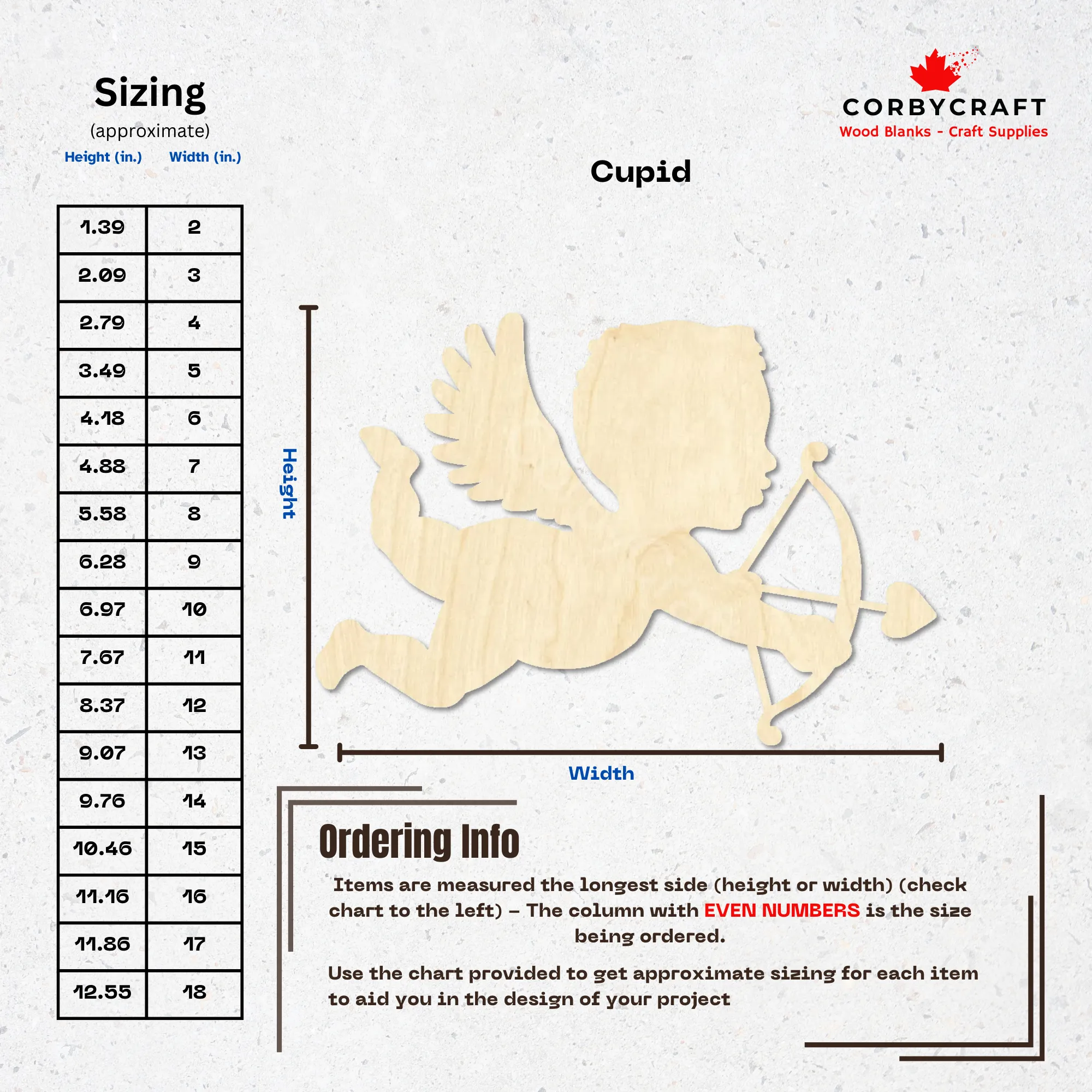 These Cupid craft blanks are cut from smooth Baltic birch plywood, ready for your next project. The classic cherub with bow and arrow shape is perfect for Valentine gifts or love-themed crafts. Each piece comes unfinished so you can paint, stain, or add resin exactly how you want.