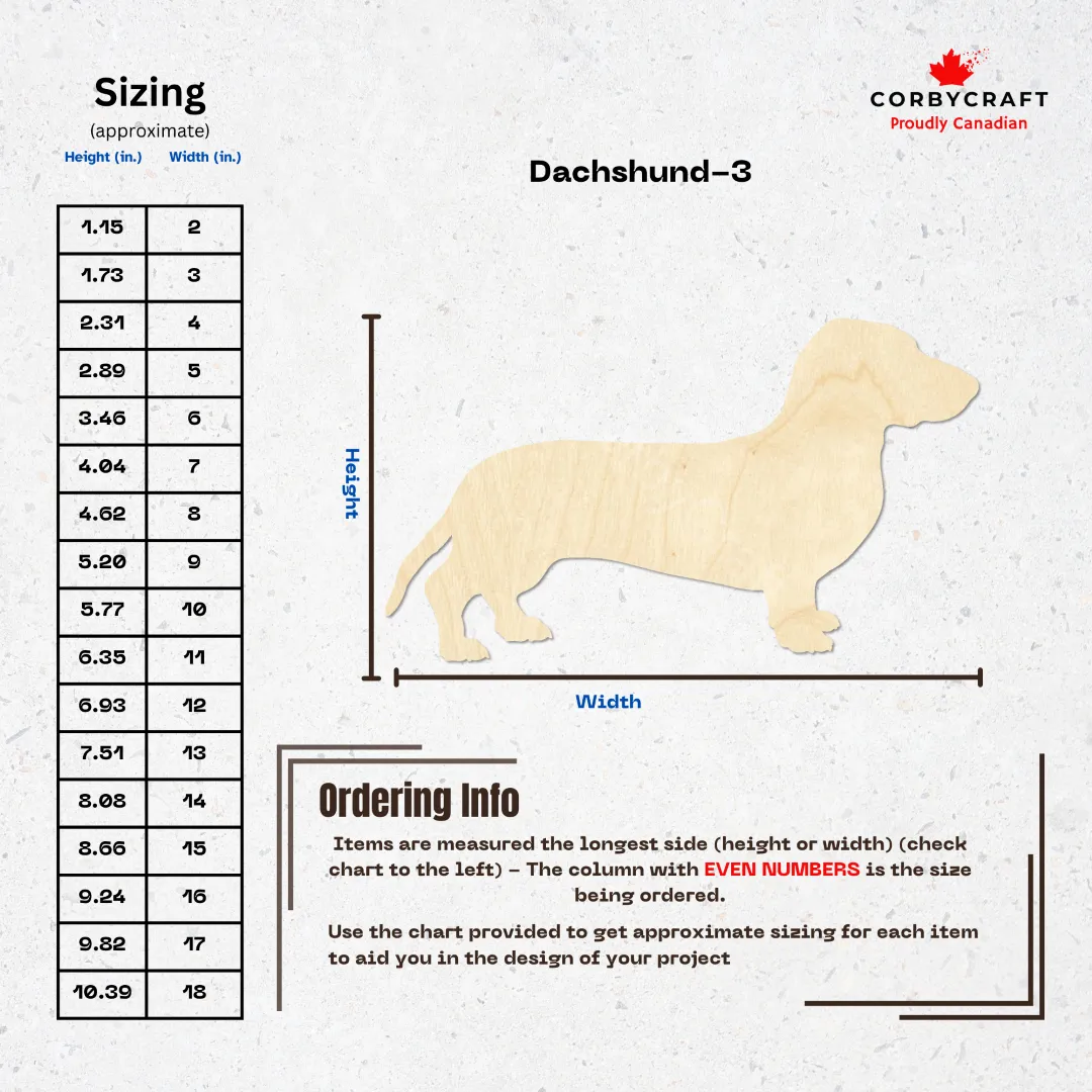 Whether you call them wiener dogs, sausage dogs, or doxies, dachshunds have a special place in the hearts of dog lovers everywhere. These laser-cut wooden shapes capture that iconic long body and playful personality perfectly. Made from quality Baltic birch plywood, they’re ready for whatever creative direction you want to take them. Paint them, stain them, burn designs into them, or leave them naturalโthe choice is yours.