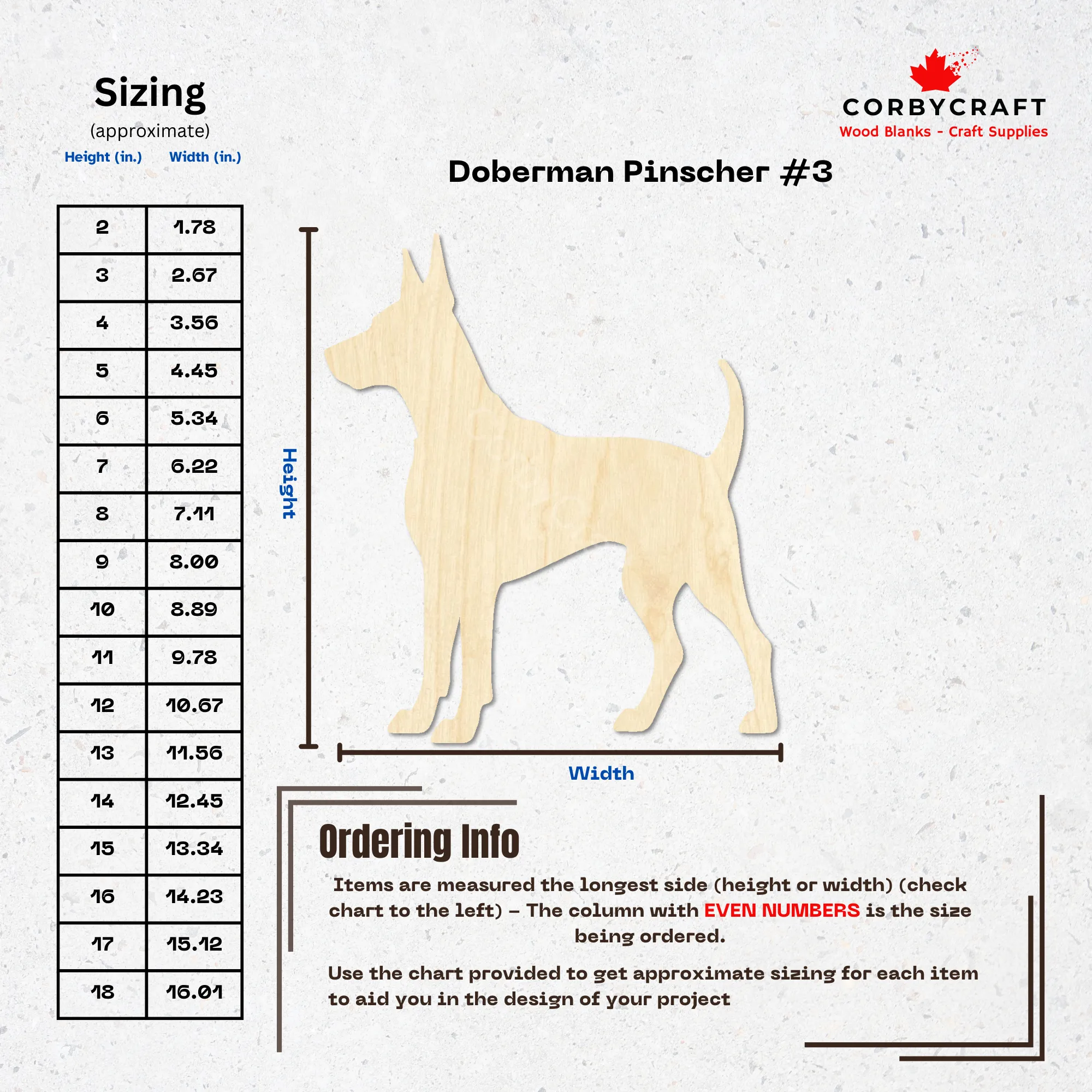This laser-cut Doberman wood blank is made from smooth Baltic birch plywood. It shows a classic Doberman Pinscher with ears up and that alert look everybody loves. Comes unfinished so you can make it exactly how you want.