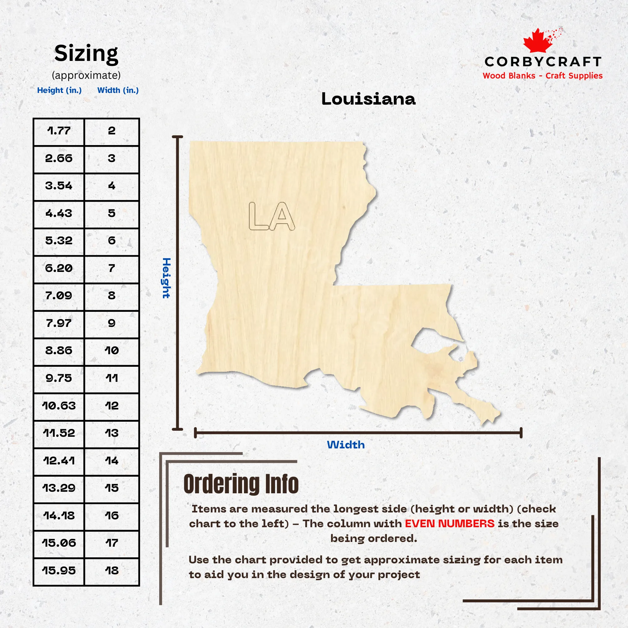 Show your Louisiana pride with these clean Baltic birch plywood cutouts in the perfect state shape. They’re smooth, sturdy, and ready for whatever project you have in mind. Great for painting, resin pours, decoupage, or making custom signs for your home.