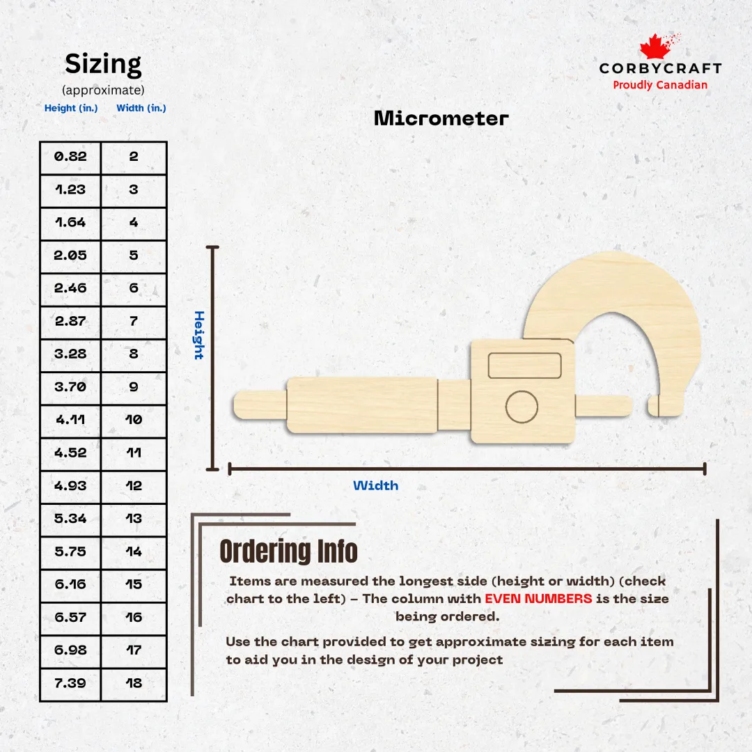 These laser-cut micrometer blanks bring industrial style to your craft projects. Precision-cut from quality Baltic birch plywood, they’re ready for whatever you want to create. Paint them, stain them, burn designs into them, or leave them naturalโthe choice is yours. They make great wall hangers, signs, or decorative pieces for a workshop or garage.