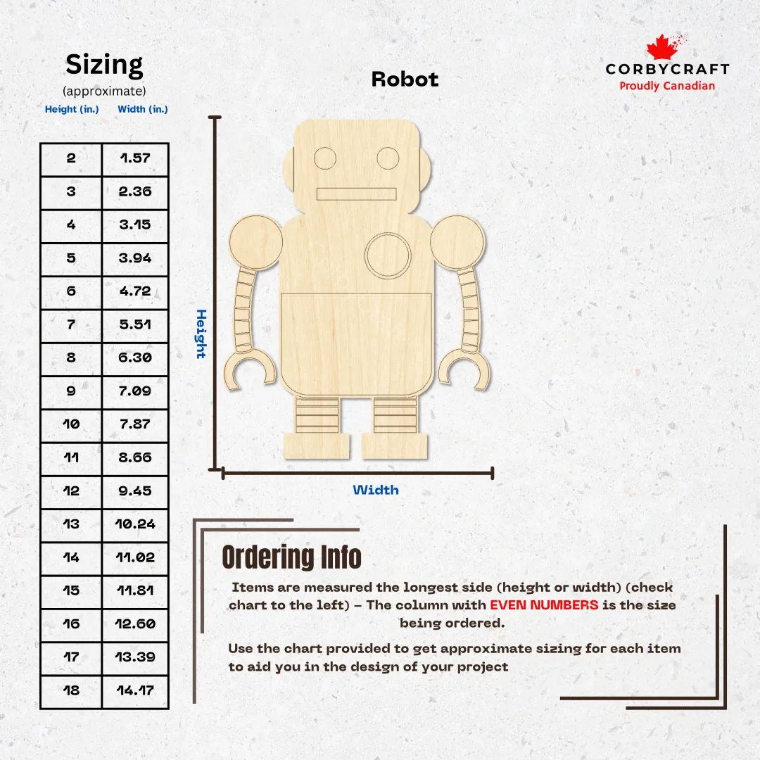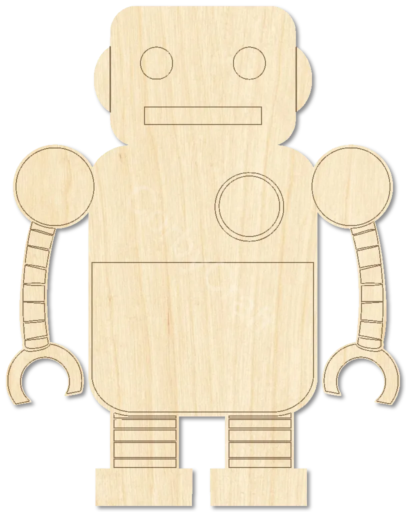 These laser-cut wooden robot cutouts are ready for whatever you dream up. Made from quality Baltic birch plywood, they’re the perfect starting point for sci-fi themed projects, wall dรฉcor, or personalized gifts. Paint them, stain them, burn designs into them, or leave them naturalโthe choice is yours. They work great as door hangers, shelf decorations, or pieces for resin projects.