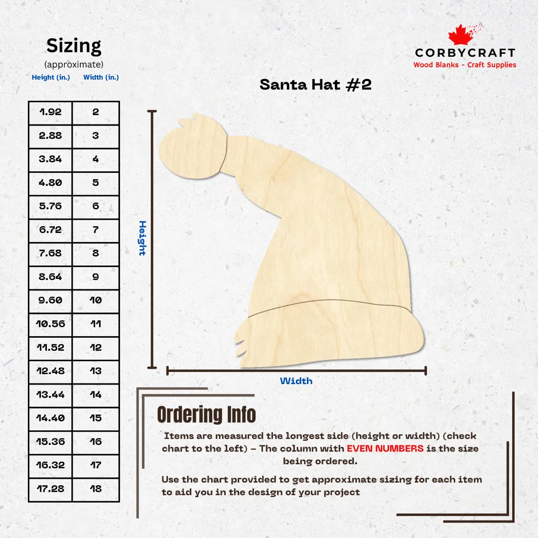 These laser-cut Santa hat wooden blanks are ready for whatever you dream up. Cut from quality Baltic birch plywood, each piece comes perfectly shaped and smooth. They’re ideal for painting, wood burning, resin pouring, staining, or decorating however you like. Hang them on doors and walls, add them to wreaths, or use them as gift tagsโthe options are wide open.