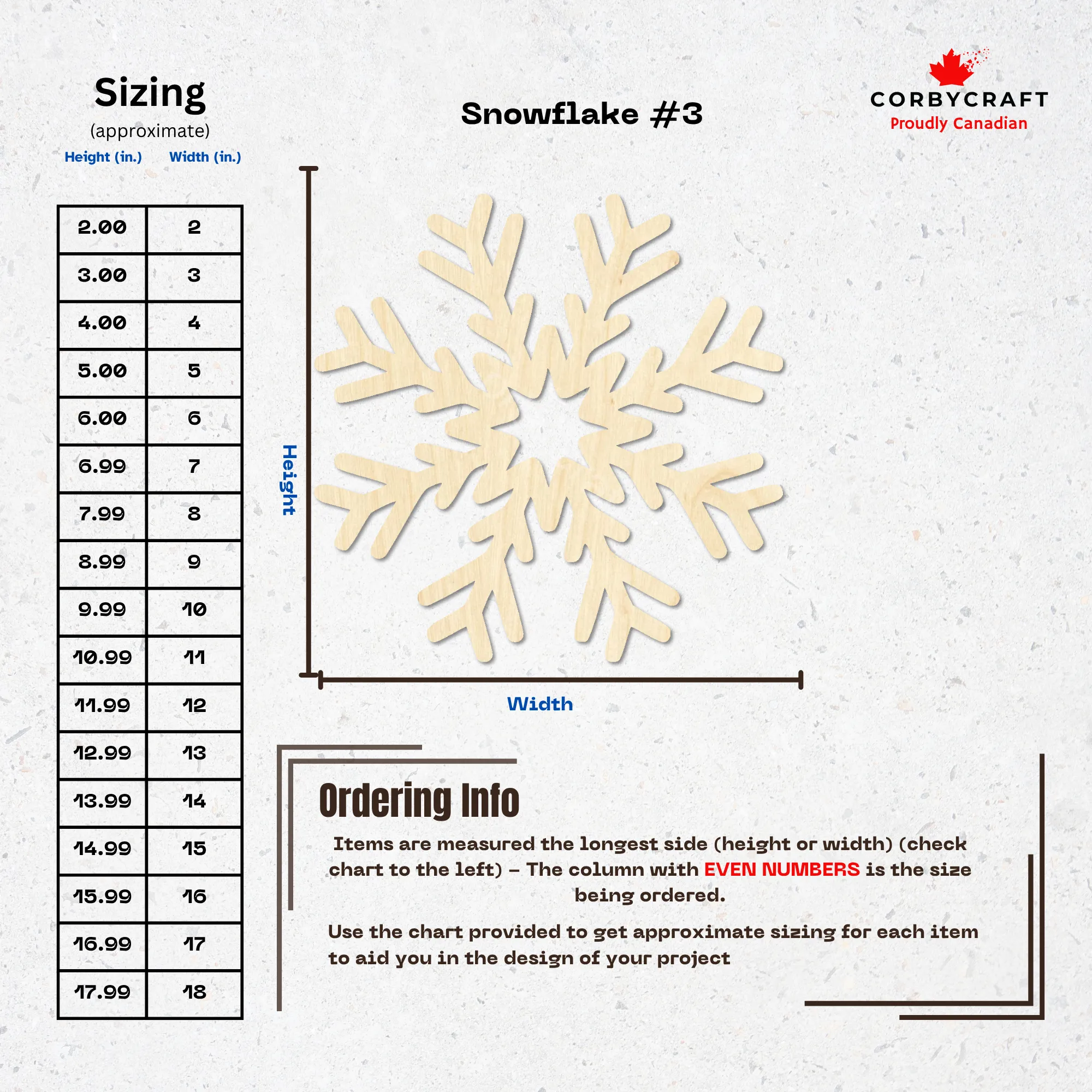 This Snowflake a laser-cut wooden blank made from quality Baltic birch plywood. It comes unfinished and ready for whatever you want to do with itโ€”paint it, stain it, burn it, or cover it in glitter. The clean edges and smooth surface make it great for laser engraving, wood burning, or resin pours. Itโ€™s available in multiple sizes, so you can go big for a wall sign or small for ornaments and tags.