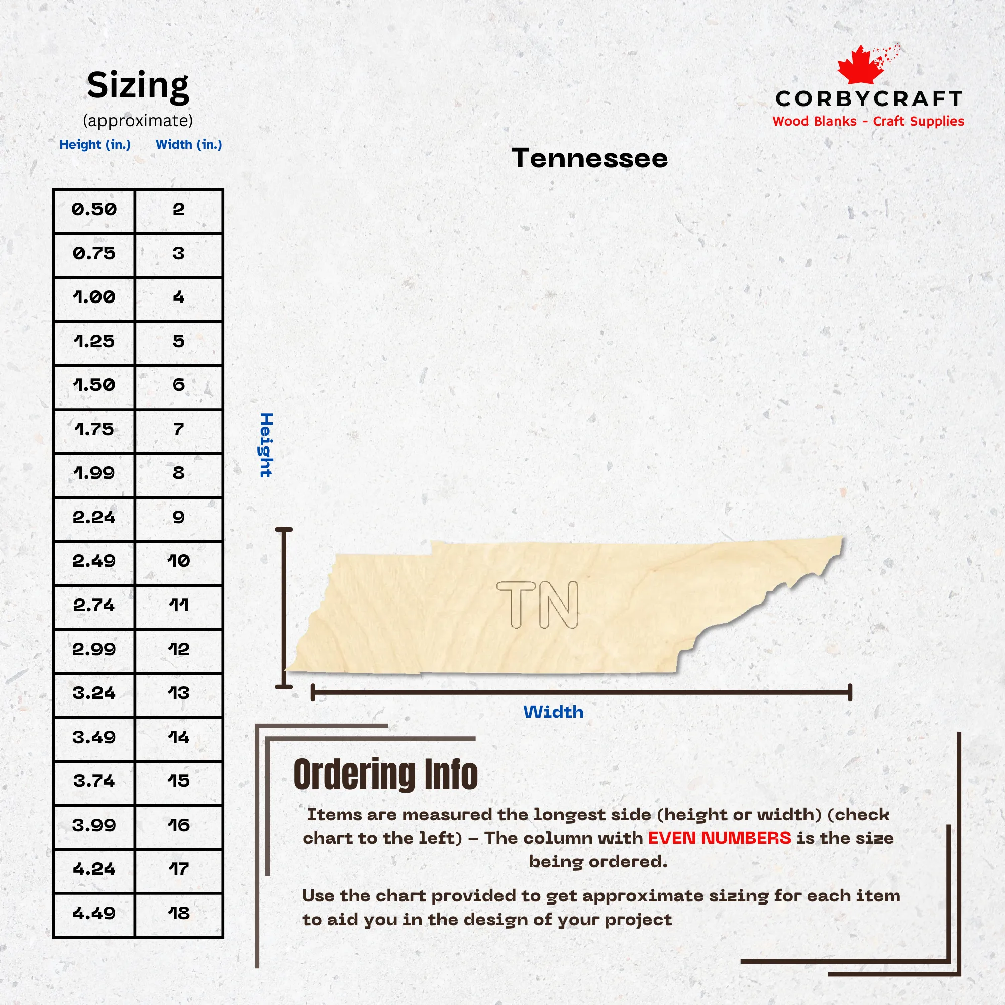 Tennessee State Volunteer State laser cut wood blank by CorbyCraft SKU 4556WQ