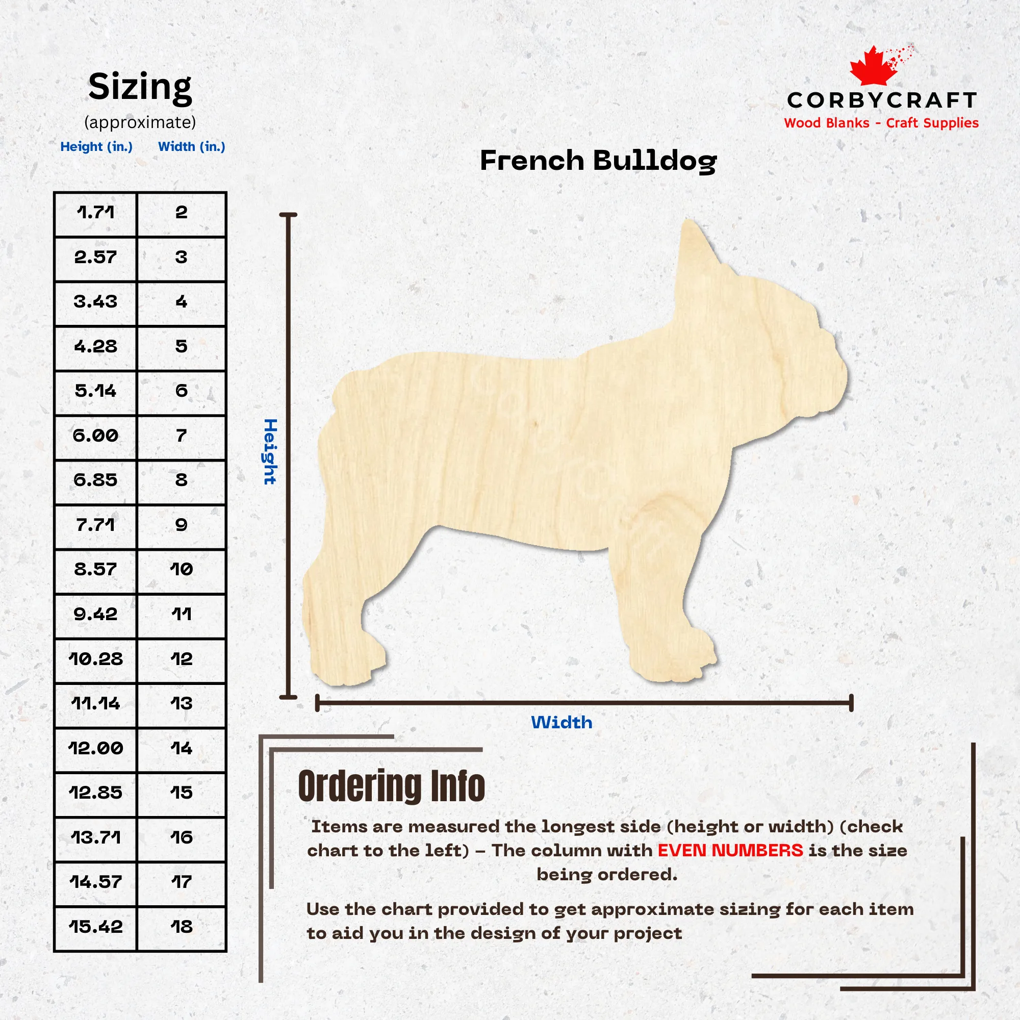 These Wooden French Bulldog Craft Blanks are cut from smooth Baltic birch plywood and ready for whatever you want to throw at them. Perfect size for signs, ornaments, or little gifts for Frenchie lovers. The clean edges take paint, stain, wood burning, or resin without any prep.