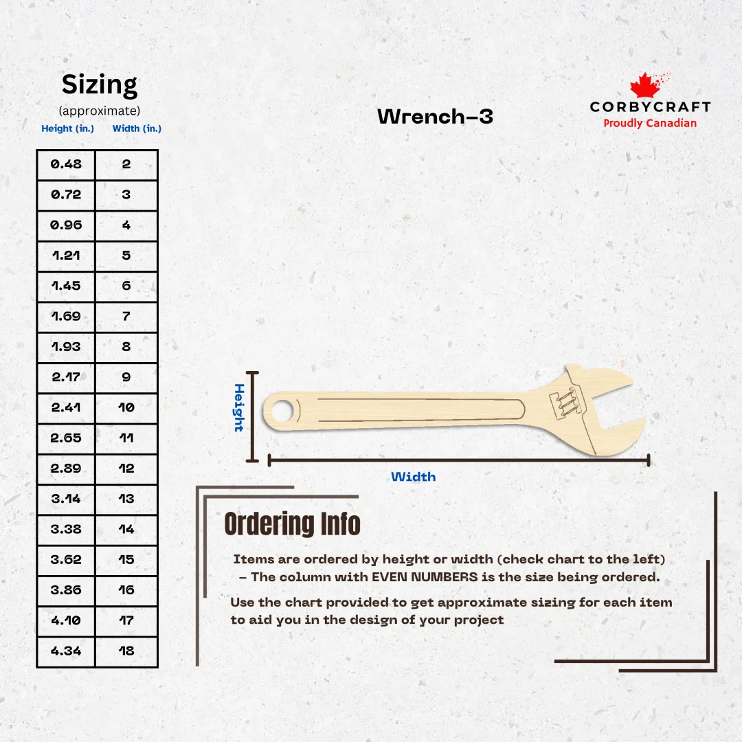 Meet the Wrench Laser Cut #3โa precision laser-cut Baltic birch blank that’s ready for whatever you dream up. These unfinished wood cutouts come in multiple sizes, giving you options whether you’re making a small accent piece or a statement wall hanging. The clean wrench silhouette works great for garage signs, tool-themed home decor, or gifts for the DIYer in your life. Since they’re unfinished, you’ve got total creative controlโpaint them, stain them, burn designs into them, or leave them natural.
